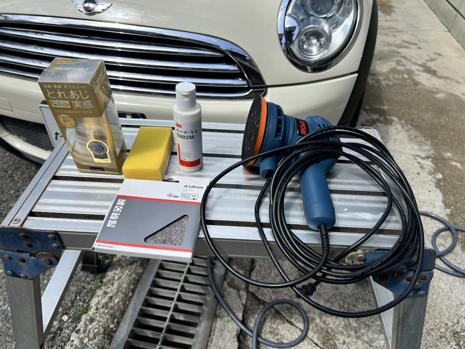 それぞれの製品や工具の用途は作業工程で順をおって説明しますが、当たり前ですがポリッシャーは必要ですね。